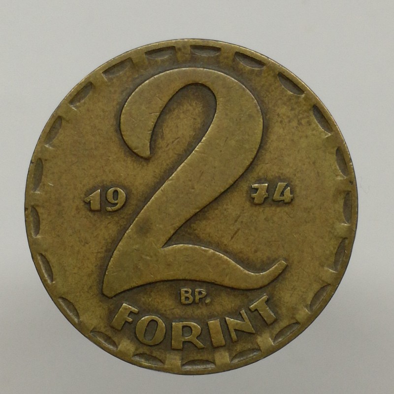 Obehová minca nominálnej hodnoty 2 forint z roku 1974. Minca platila na území Maďarska.