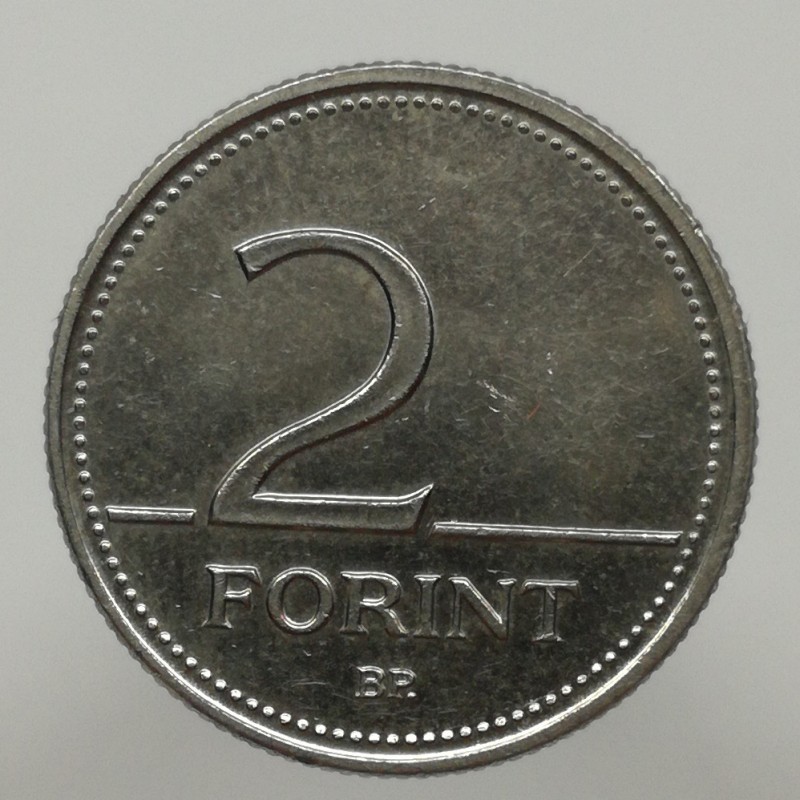 Obehová minca nominálnej hodnoty 2 forint z roku 2002. Minca platila na území Maďarska.