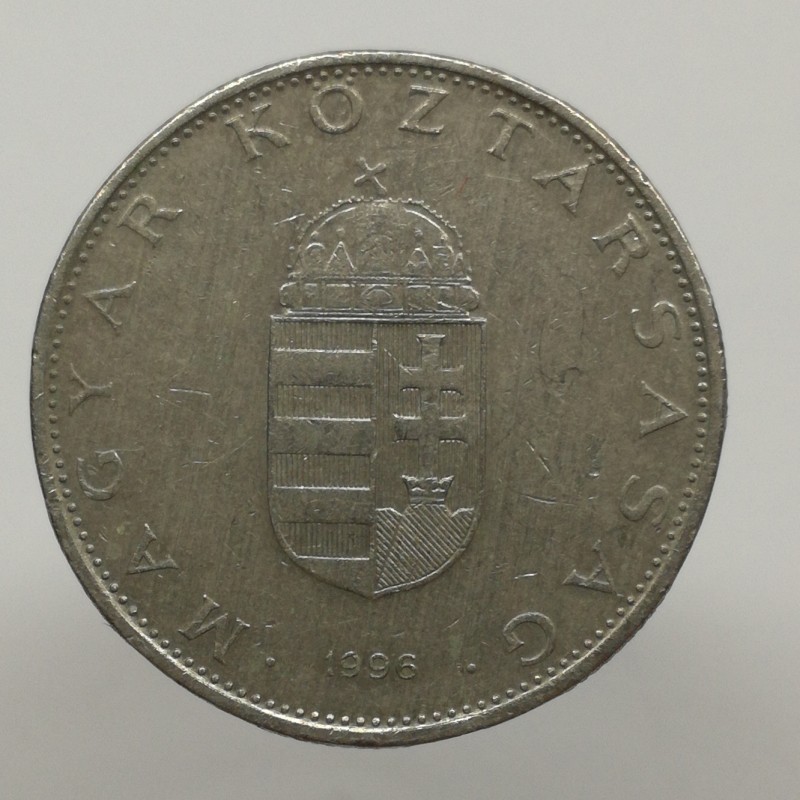 Obehová minca nominálnej hodnoty 10 forint z roku 1996. Minca platila na území Maďarska.