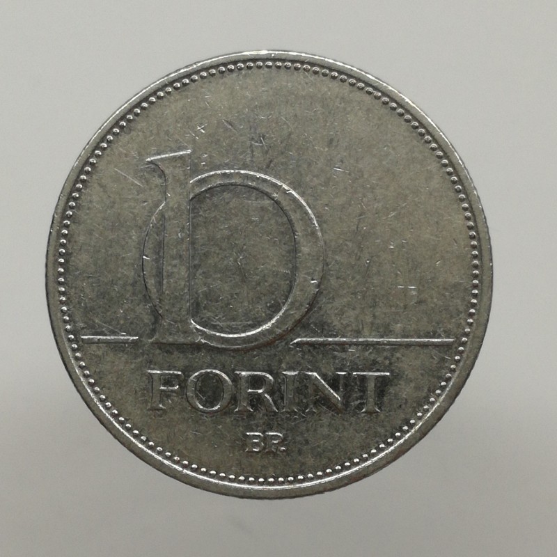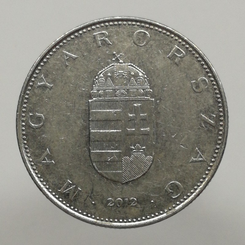Obehová minca nominálnej hodnoty 10 forint z roku 2012. Minca platila na území Maďarska.