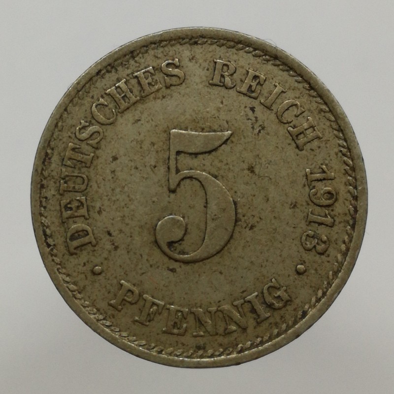 Obehová minca nominálnej hodnoty 5 pfennig z roku 1913. Minca platila v obehu v Nemecku.