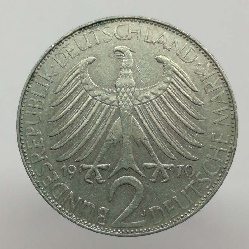 1970 J - 2 mark, M. Planck, Bundesrepublik Deutschland, Nemecko