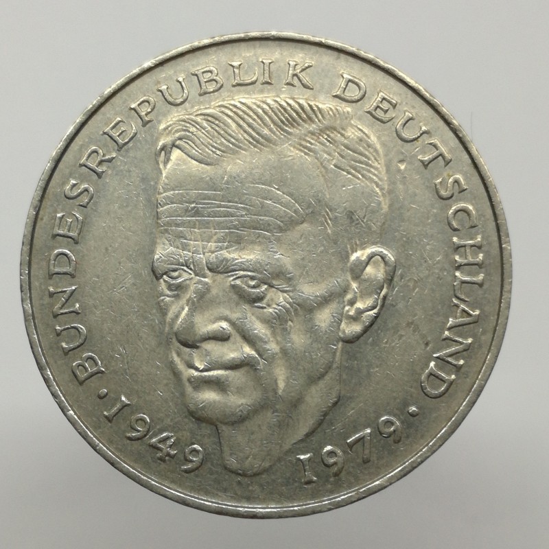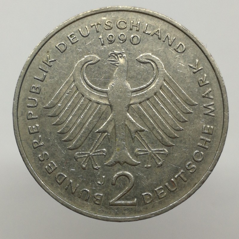 Obehová minca nominálnej hodnoty 2 mark z roku 1990. Minca platila v Nemecku.