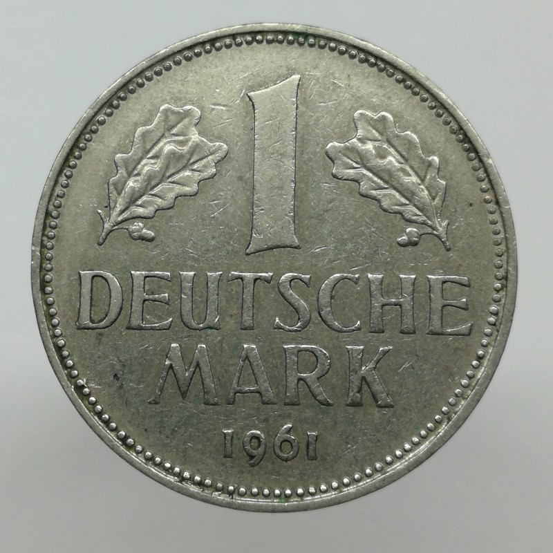 Obehová minca nominálnej hodnoty 1 mark z roku 1961. Minca platila v Nemecku.