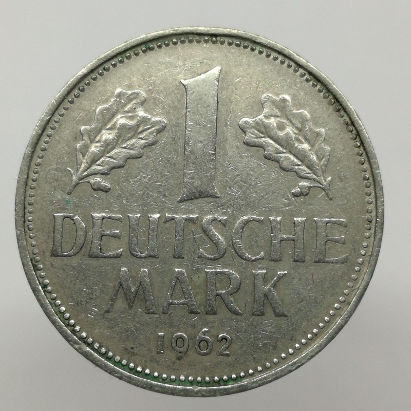 Obehová minca nominálnej hodnoty 1 mark z roku 1962. Minca platila v Nemecku.