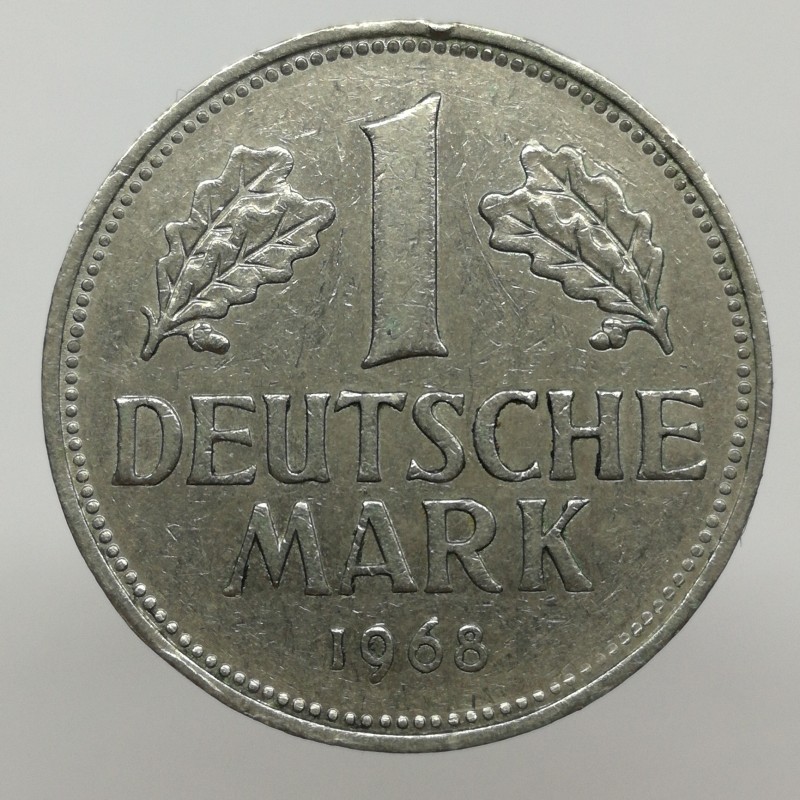 Obehová minca nominálnej hodnoty 1 mark z roku 1968. Minca platila v Nemecku.