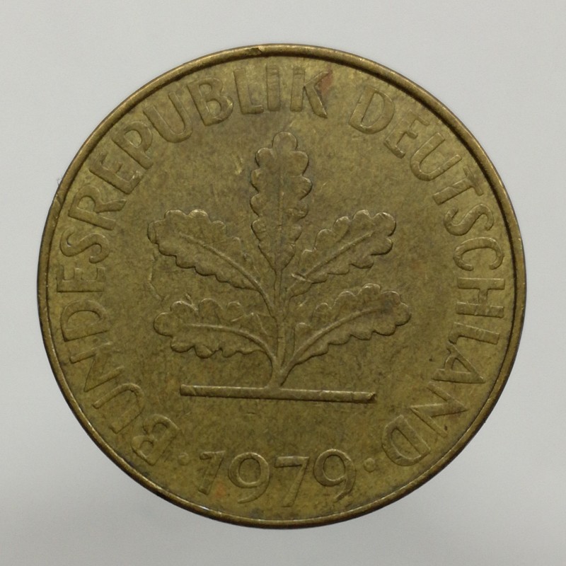 Obehová minca nominálnej hodnoty 10 pfennig z roku 1979. Minca platila v Nemecku.