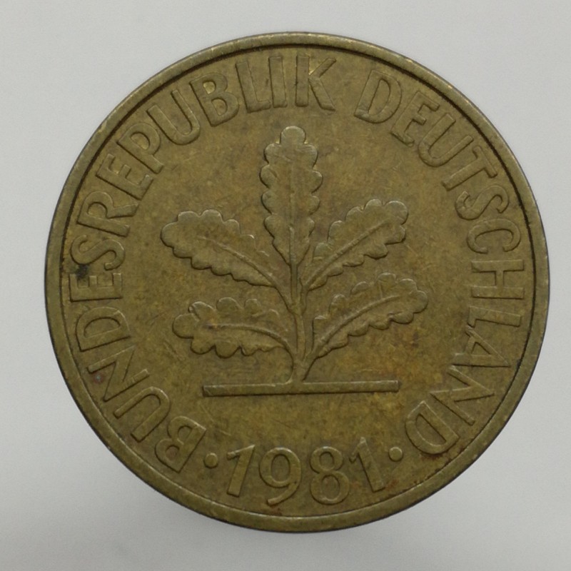 Obehová minca nominálnej hodnoty 10 pfennig z roku 1981. Minca platila v Nemecku.