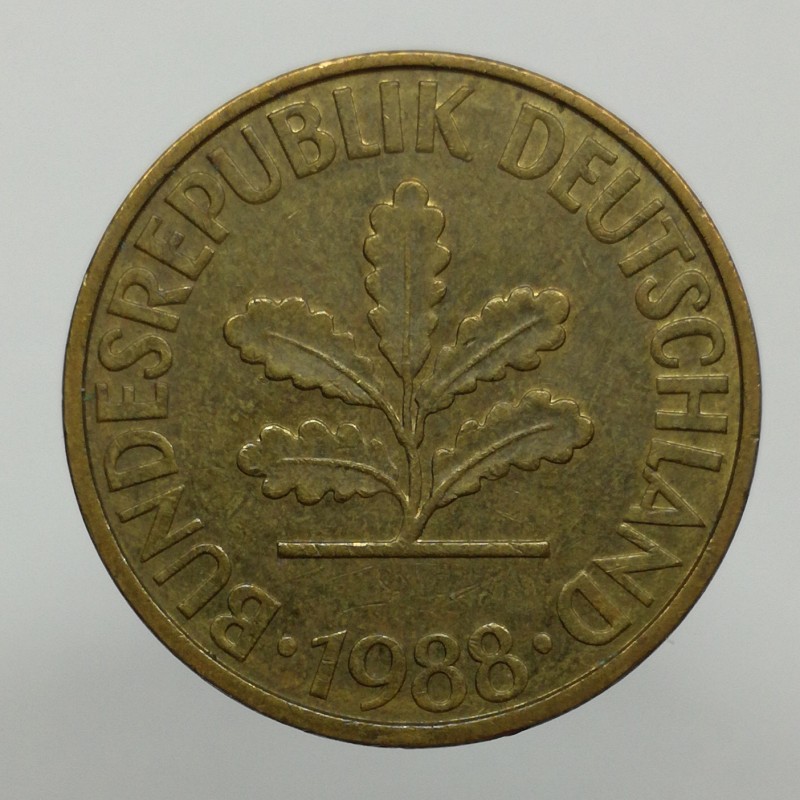 Obehová minca nominálnej hodnoty 10 pfennig z roku 1988. Minca platila v Nemecku.