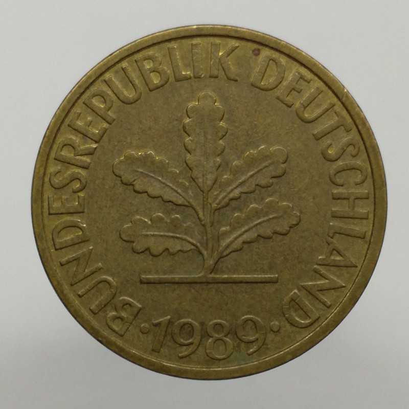 Obehová minca nominálnej hodnoty 10 pfennig z roku 1989. Minca platila v Nemecku.