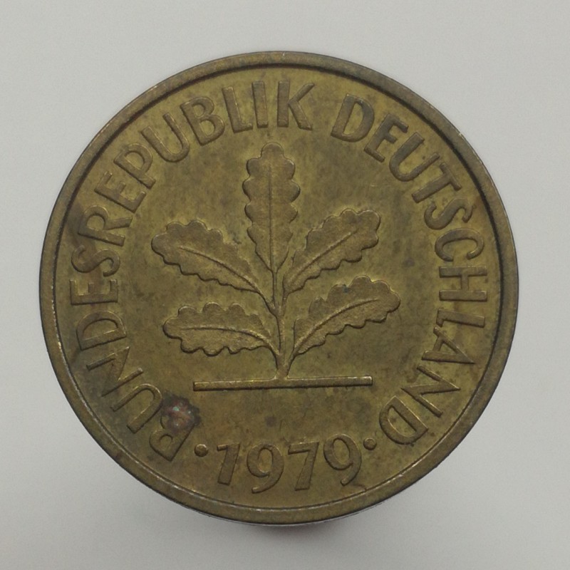 Obehová minca nominálnej hodnoty 5 pfennig z roku 1979. Minca platila v obehu v Nemecku.