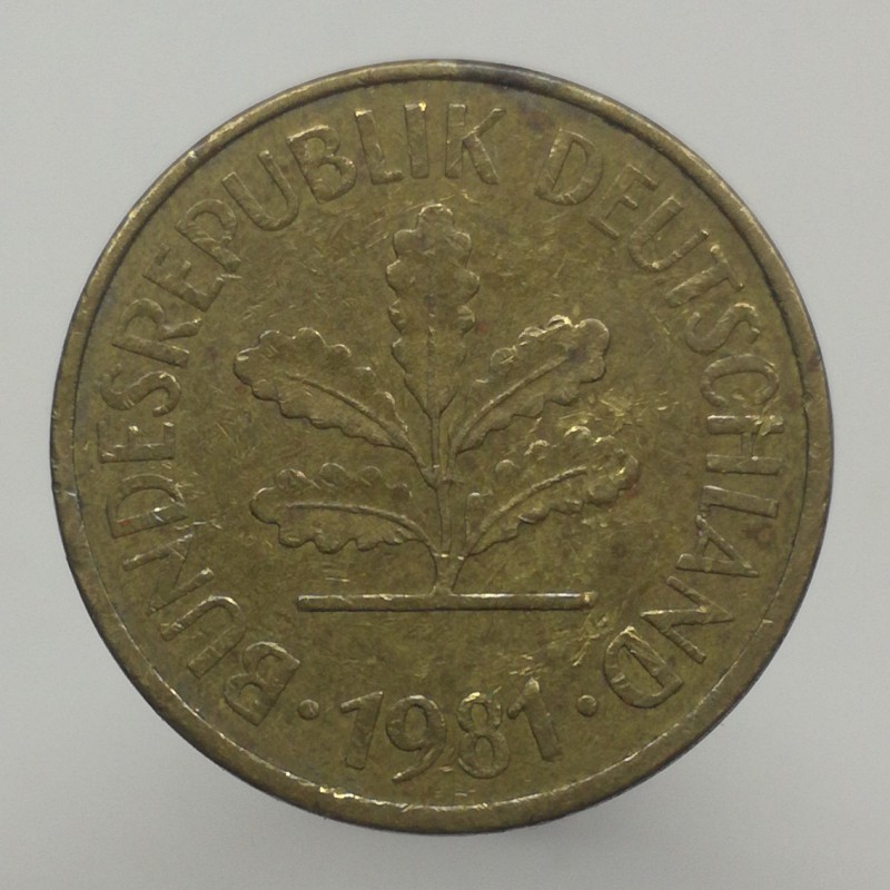 Obehová minca nominálnej hodnoty 5 pfennig z roku 1981. Minca platila v obehu v Nemecku.