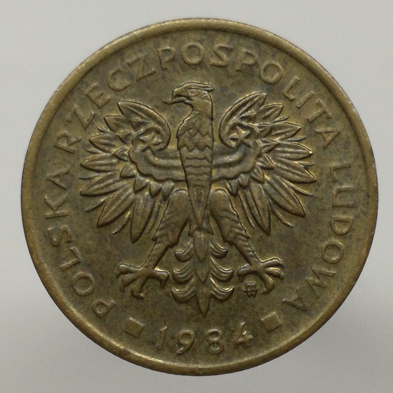 Obehová minca nominálnej hodnoty 2 zlote z roku 1984. Minca platila na území Poľska.