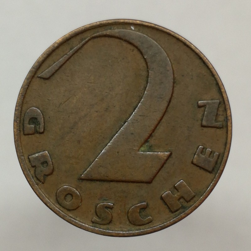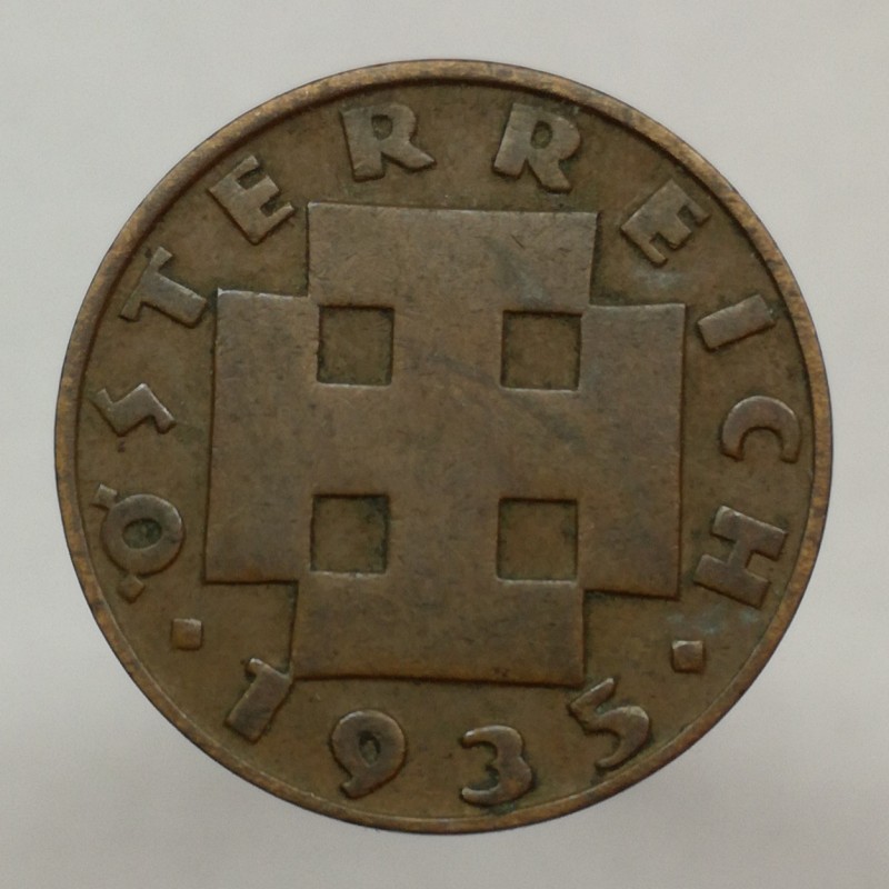 Obehová minca nominálnej hodnoty 2 groschen z roku 1935. Minca platila v obehu v Rakúsku.