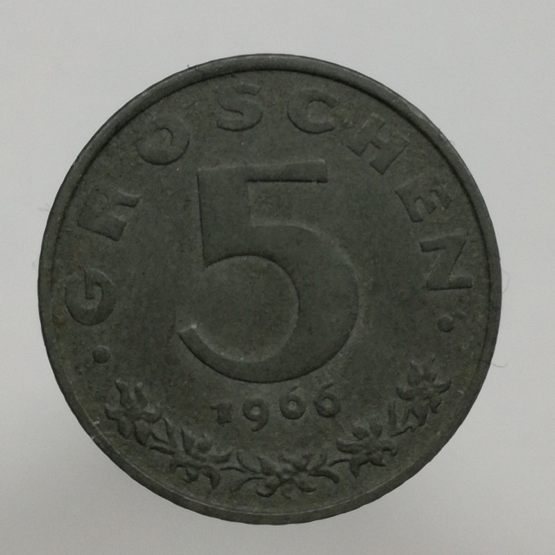 Obehová minca nominálnej hodnoty 5 groschen z roku 1966. Minca platila v obehu v Rakúsku.