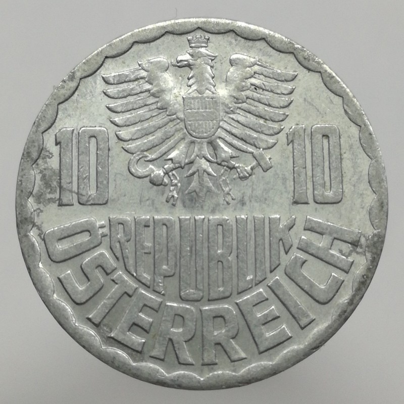 Obehová minca nominálnej hodnoty 10 groschen z roku 1971. Minca platila v obehu v Rakúsku.