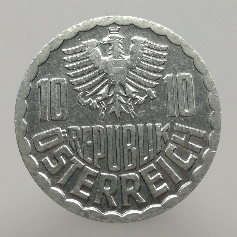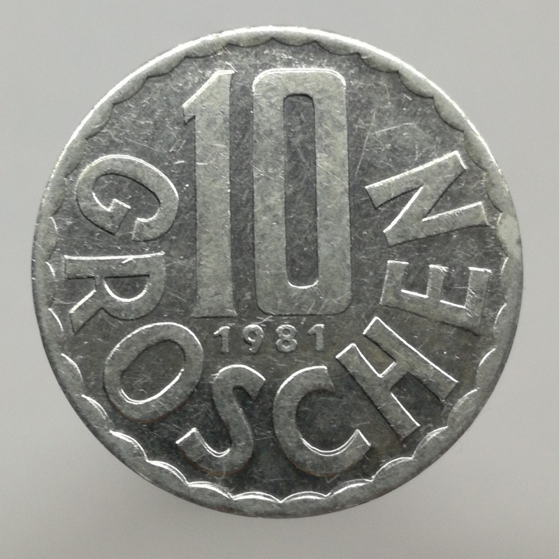 Obehová minca nominálnej hodnoty 10 groschen z roku 1981. Minca platila v obehu v Rakúsku.