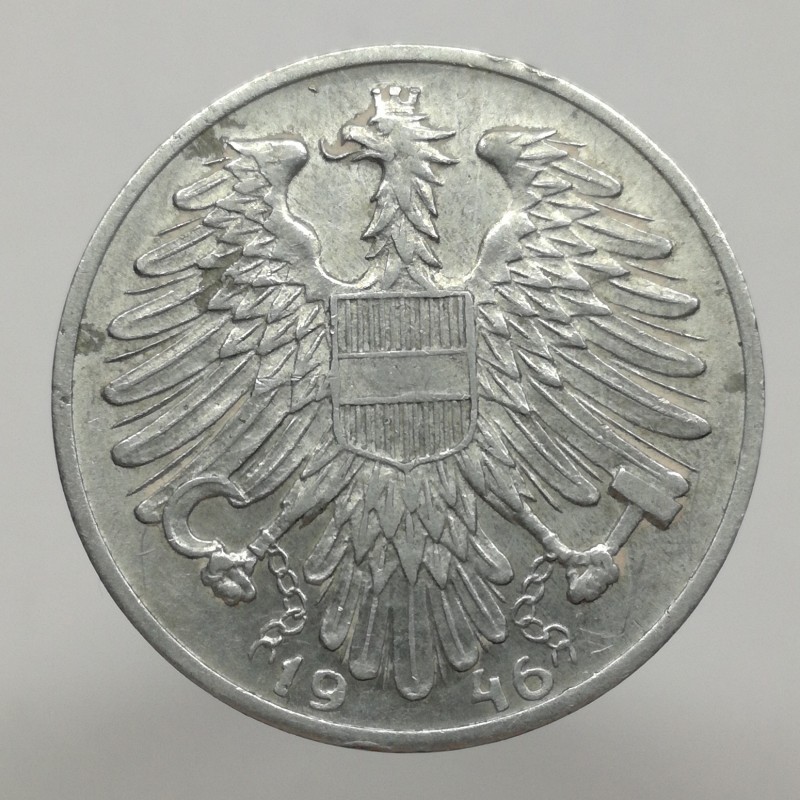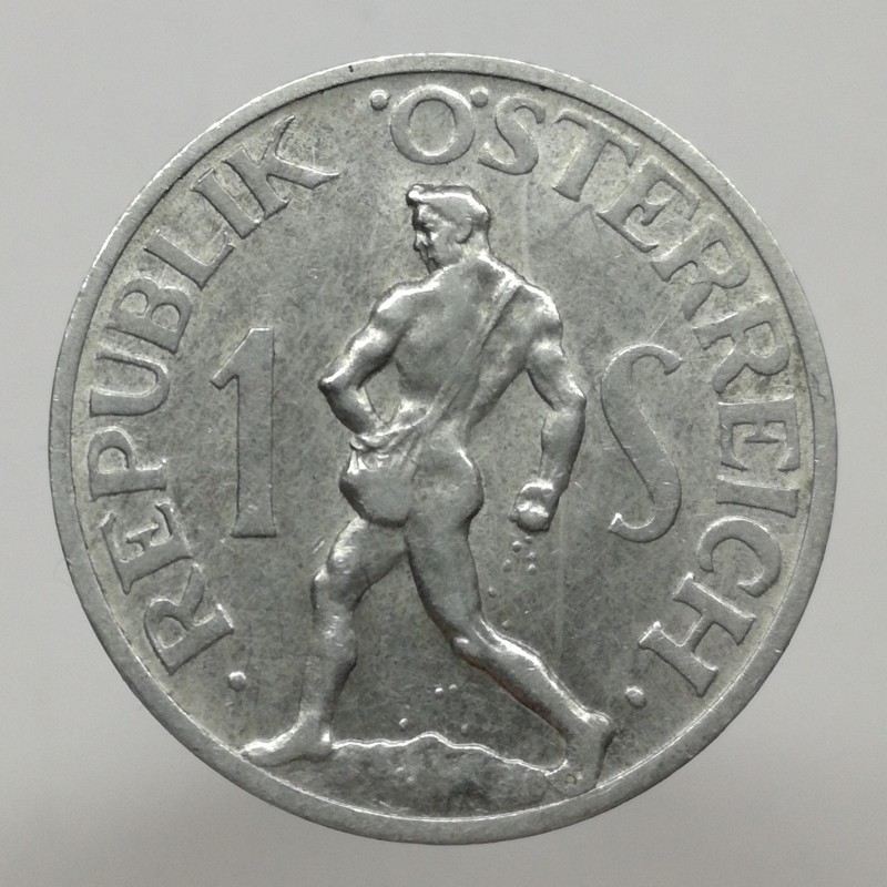 Obehová minca nominálnej hodnoty 1 schilling z roku 1946. Minca platila v obehu v Rakúsku.