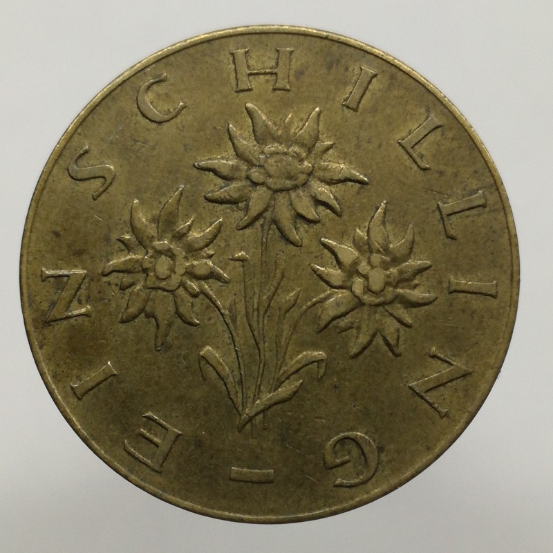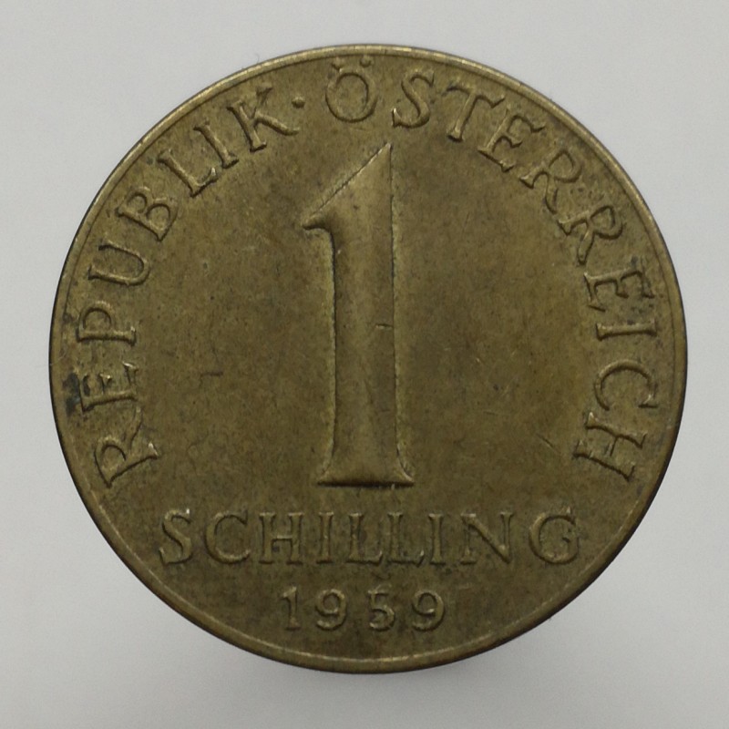 Obehová minca nominálnej hodnoty 1 schilling z roku 1959. Minca platila v obehu v Rakúsku.