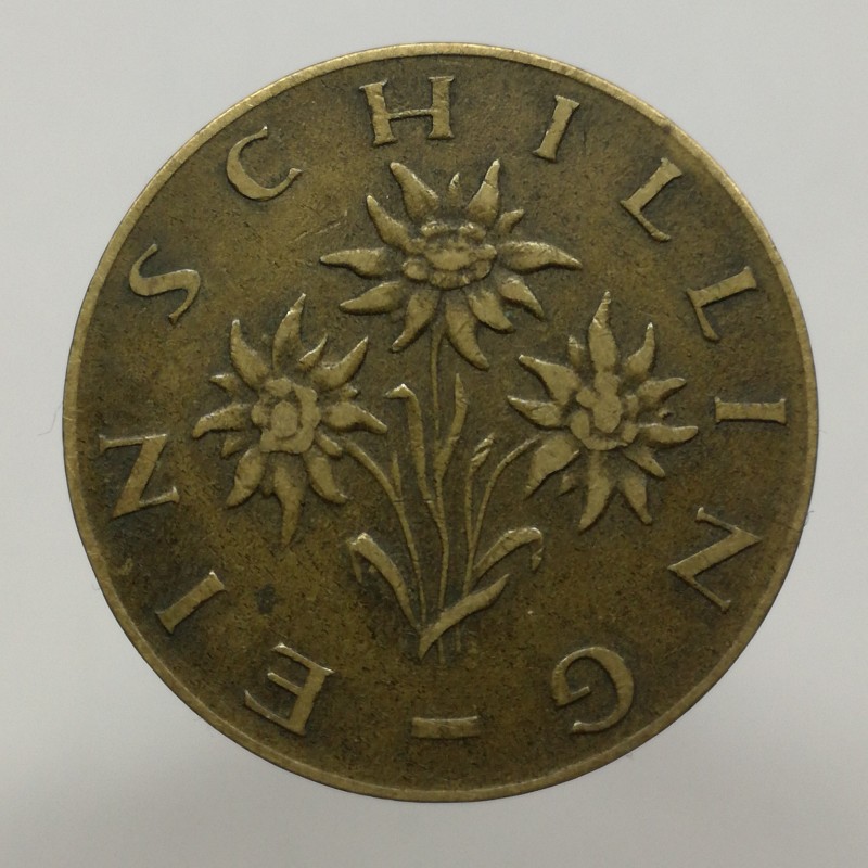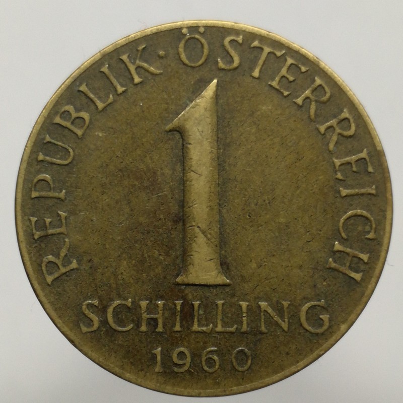 Obehová minca nominálnej hodnoty 1 schilling z roku 1960. Minca platila v obehu v Rakúsku.