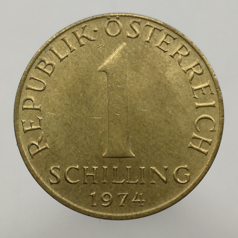 Obehová minca nominálnej hodnoty 1 schilling z roku 1974. Minca platila v obehu v Rakúsku.