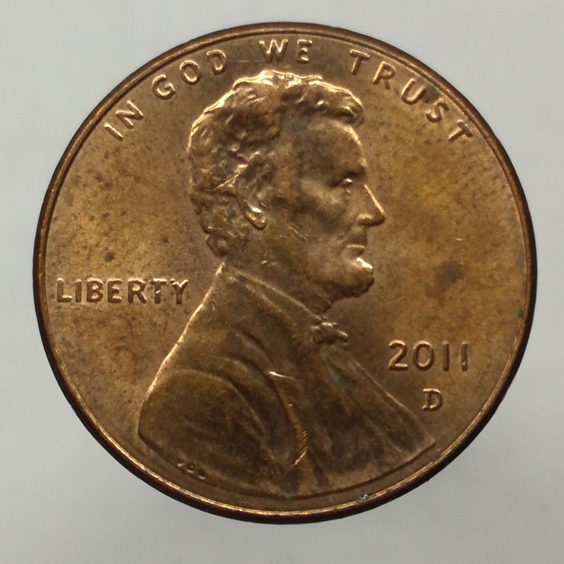 Obehová minca nominálnej hodnoty 1 cent z roku 2011. Minca platila v obehu v Spojených štátoch amerických.