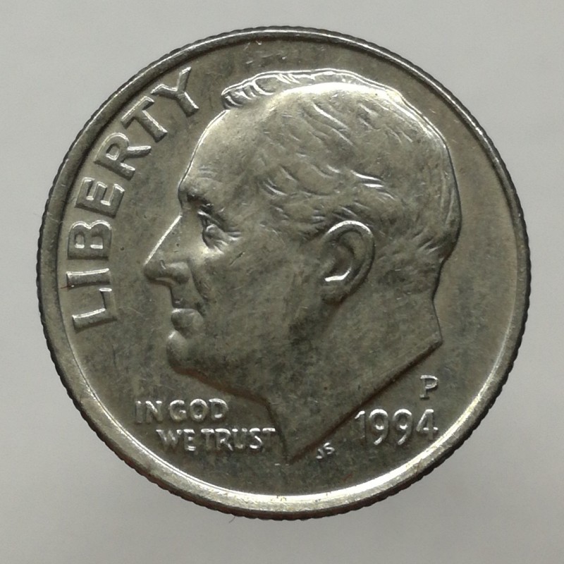 Obehová minca nominálnej hodnoty 1 dime z roku 1994. Minca platila v obehu v Spojených štátoch amerických.