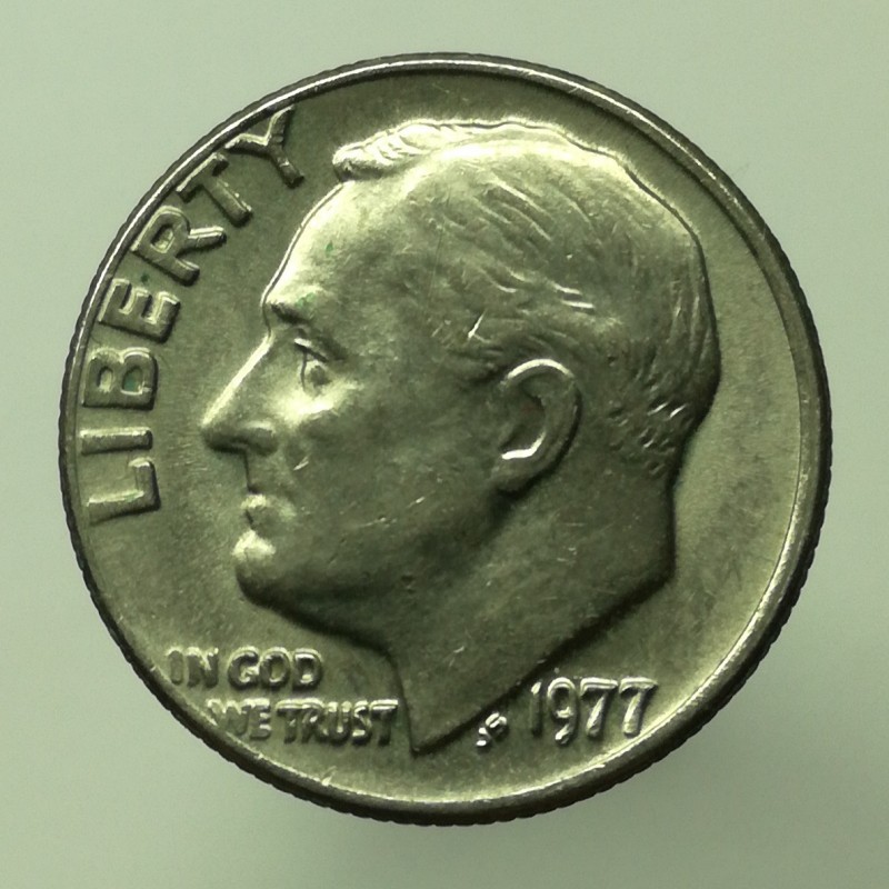 Obehová minca nominálnej hodnoty 1 dime z roku 1977. Minca platila v obehu v Spojených štátoch amerických.