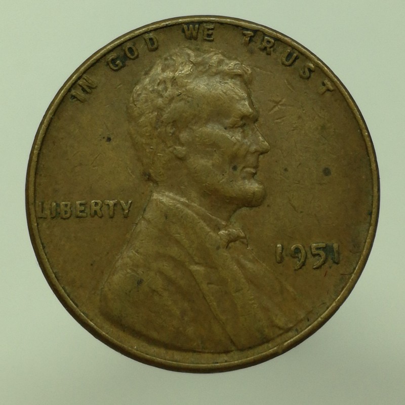 Obehová minca nominálnej hodnoty 1 cent z roku 1951. Minca platila v obehu v Spojených štátoch amerických.