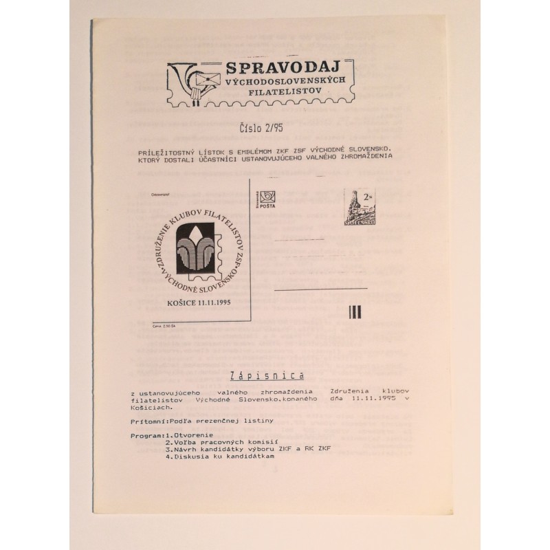 Spravodaj východoslovenských filatelistov číslo 2/1995. Výhradne pre vnútornú potrebu ZSF.