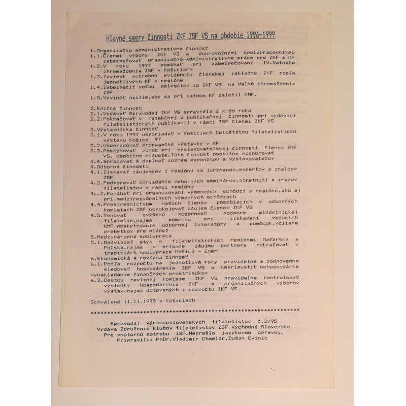 SPRAVODAJ východoslovenských filatelistov číslo 2/95